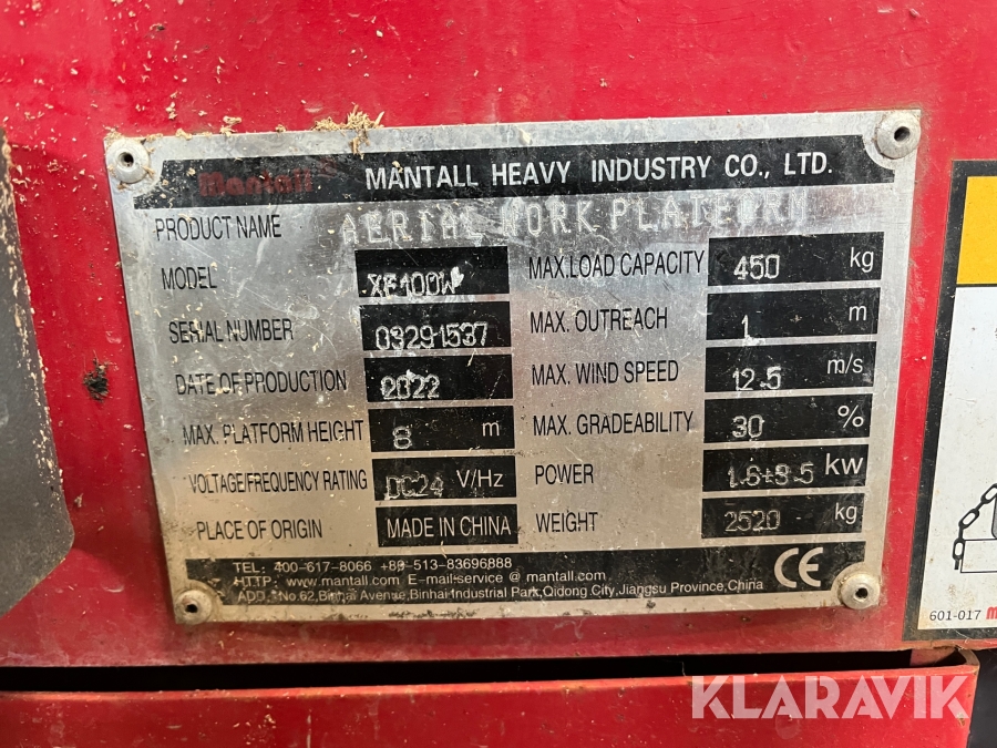 Sakselift Mantall XE100W - 10 meter