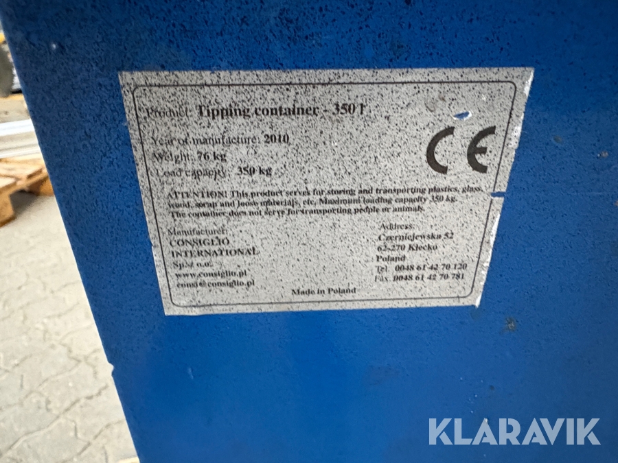 Som køber skal du kontrollere objektet ved afhentning Herefter kan der ikke gøres indvendinger. Hvis objektet adskiller sig væsentligt fra beskrivelsen, skal Klaravik kontaktes inden objektet fragtes (bemærk, at der gælder særskilte vilkår for konkursauktioner). Alle objekt findes hos den sælgende virksomhed, og du som køber har ansvar for afhentning og fragt. Som køber har du 15 dage til at afhente objektet, efter auktionen er afsluttet.