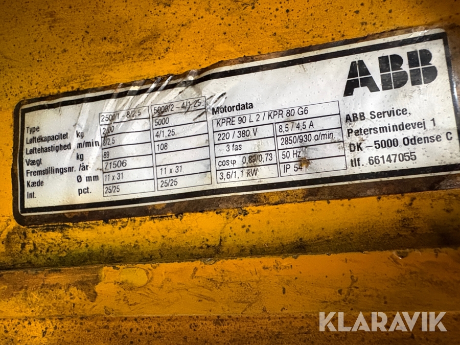 Løftetalje ABB 2500/1-8/2,5