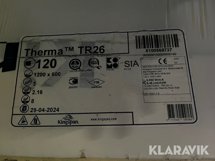 Isoleringsplader Kingspan Therma TR26 120 mm