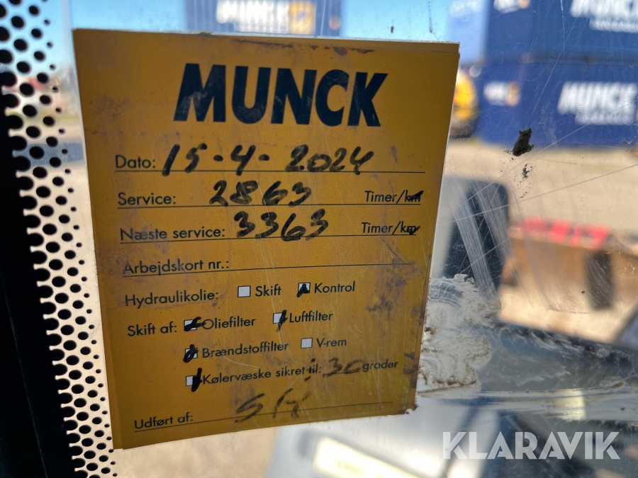 Sælg på KlaravikMateriellet kan afhentes på tirsdage og torsdage mellem kl. 7-14. Afhentning uden for ovennævnte tidspunkter afregnes med kr. 1000,- direkte til Munck Asfalt A/S.