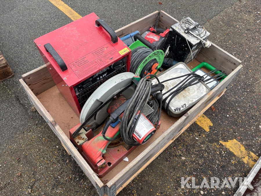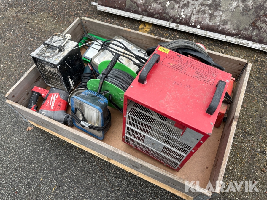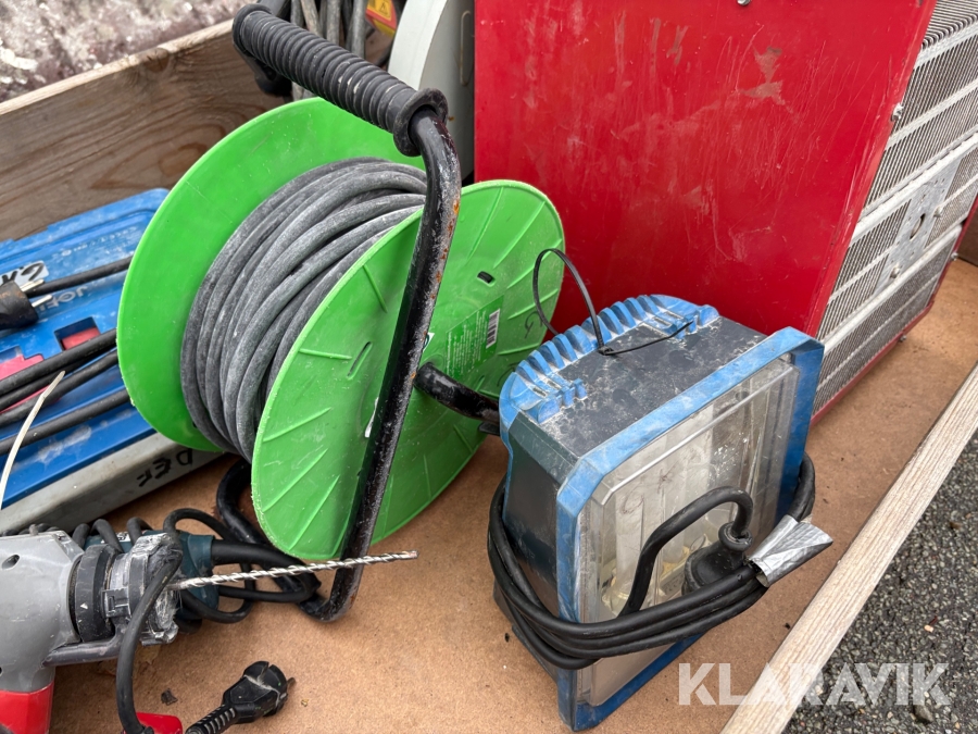 Håndværktøj, lamper og varmeblæsere