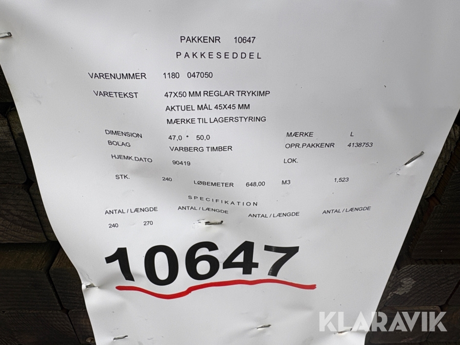 Trykimprægneret reglar - 240 styk