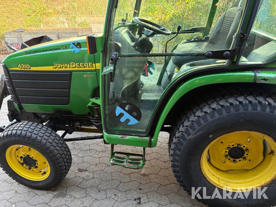 Traktor John Deer 4310 med saltudlægger, kost og sneplov