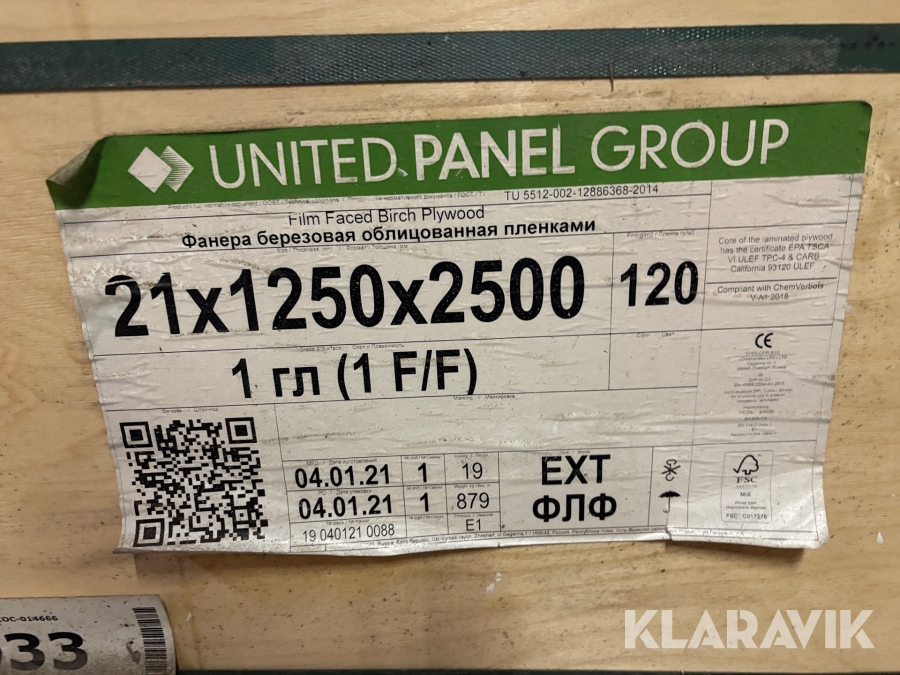 Støbeplader United Panel Group Film Faxes Birch plywood 19 styk