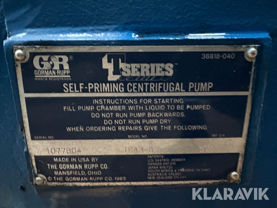 Centrifugal pumpe Gorman Rupp T6A3-B