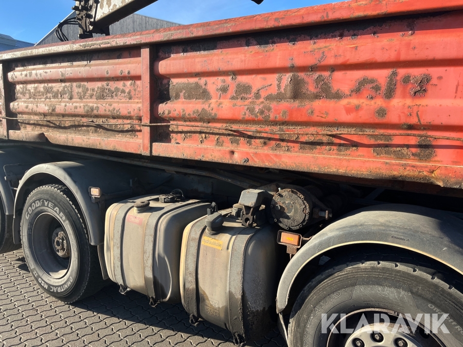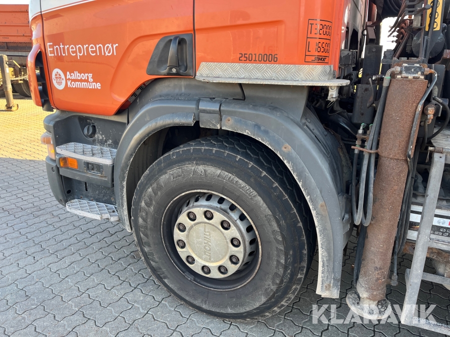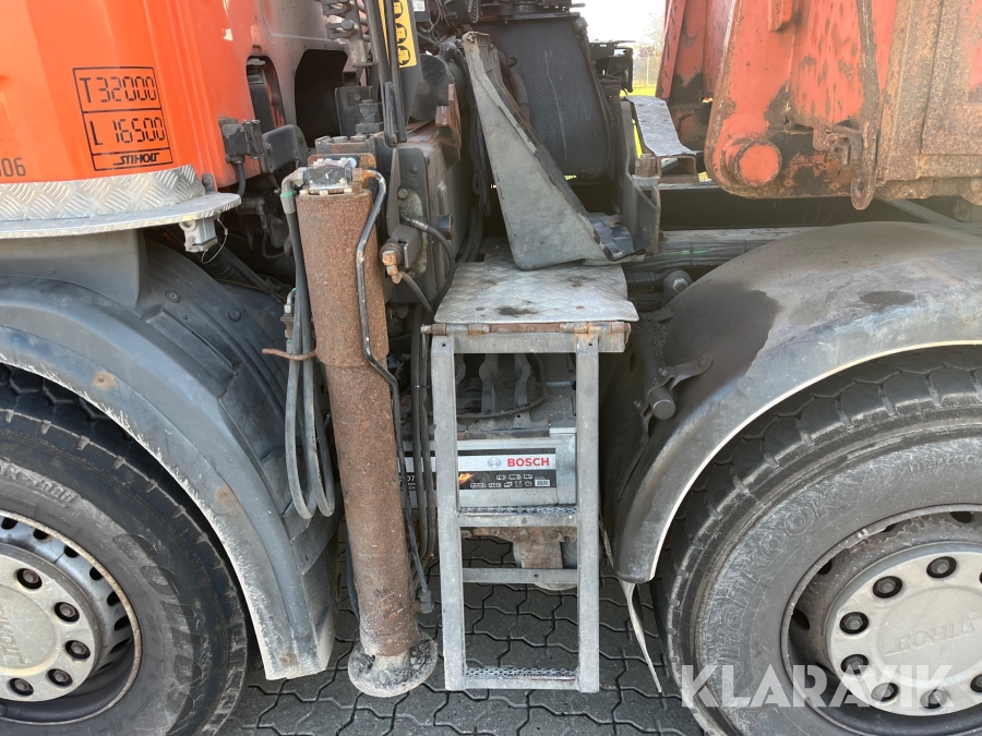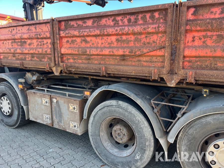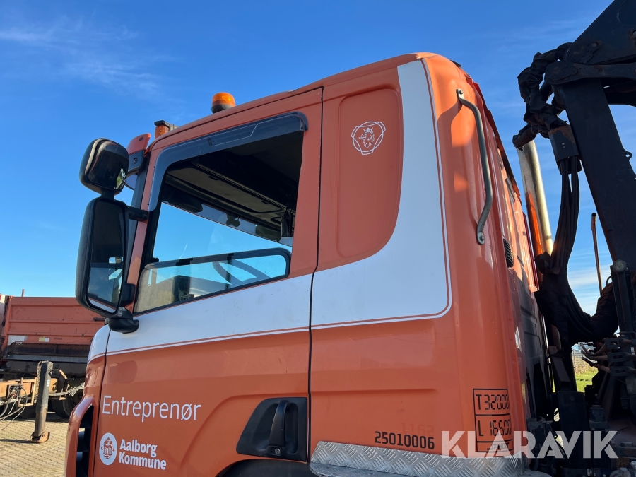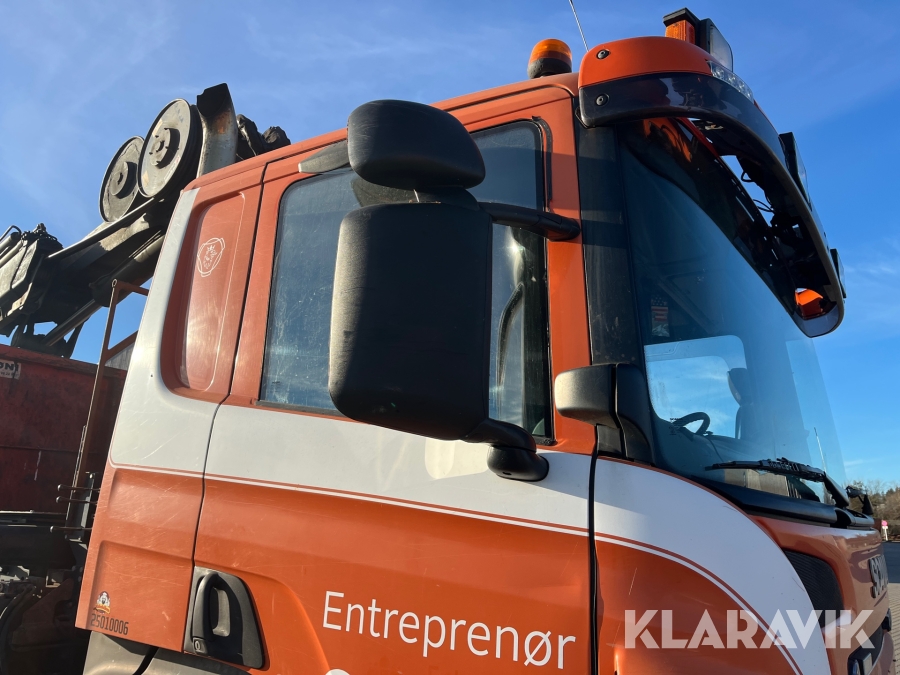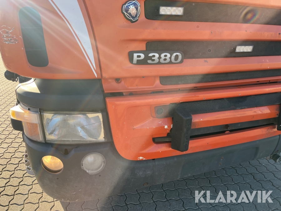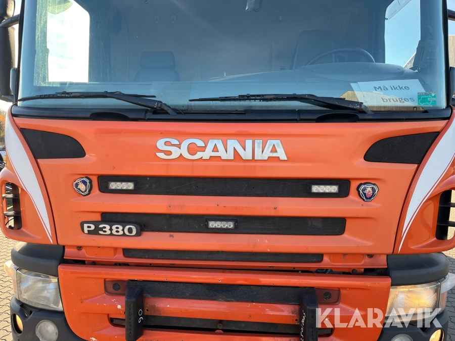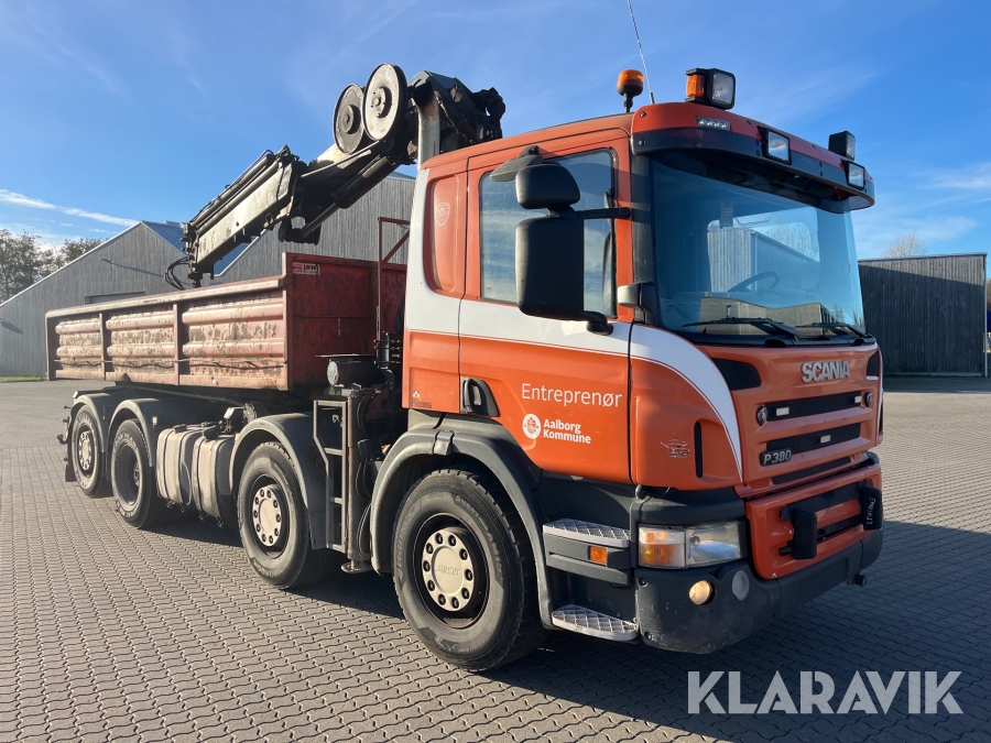 Lastbil Scania P380 med kran og lad