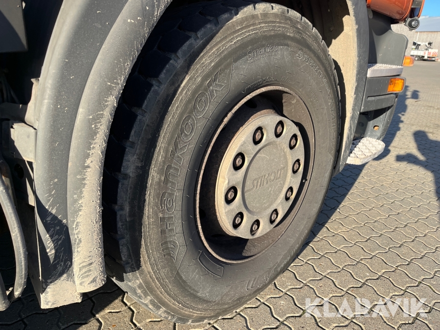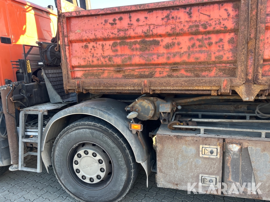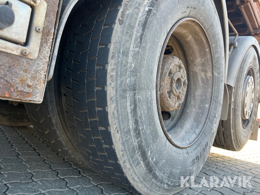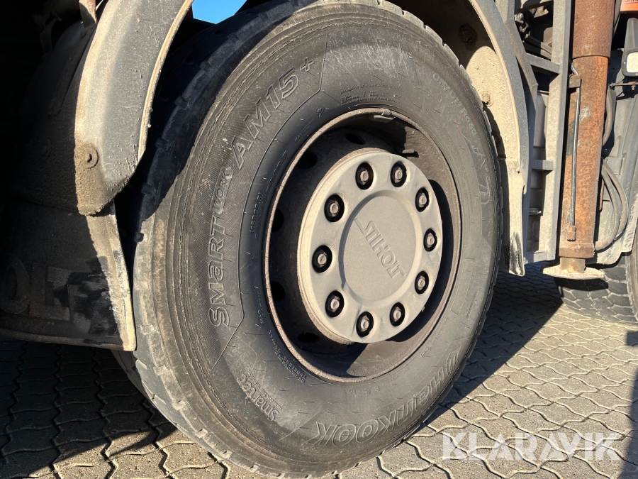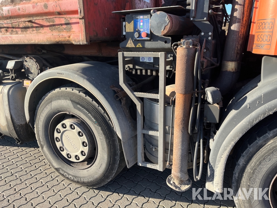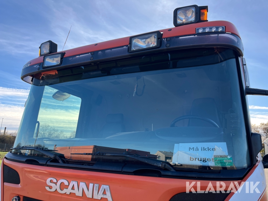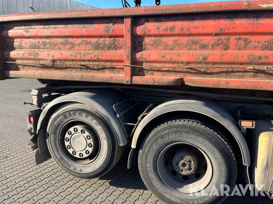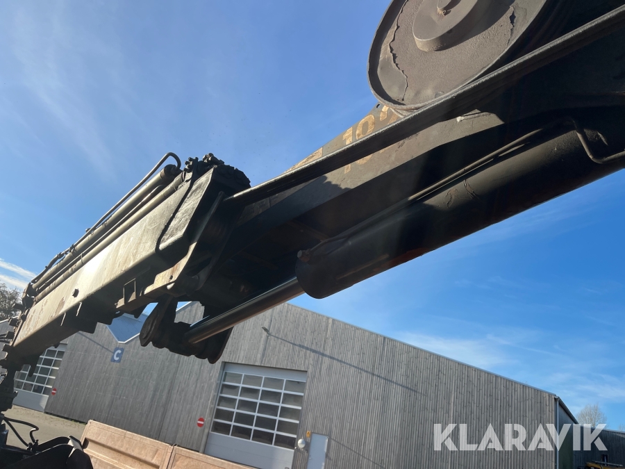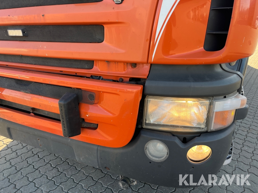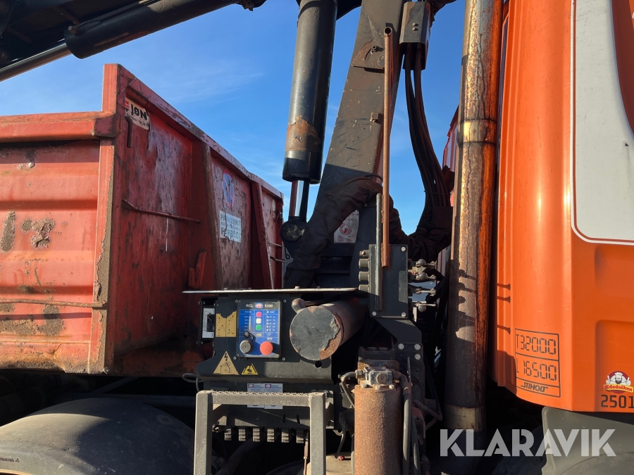 Lastbil Scania P380 med kran og lad
