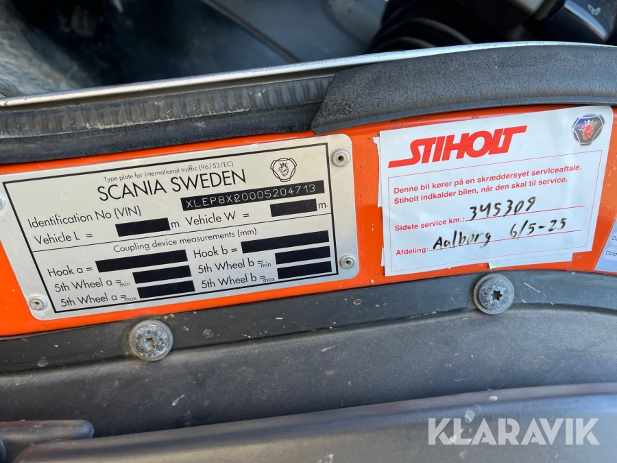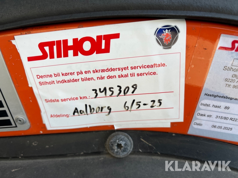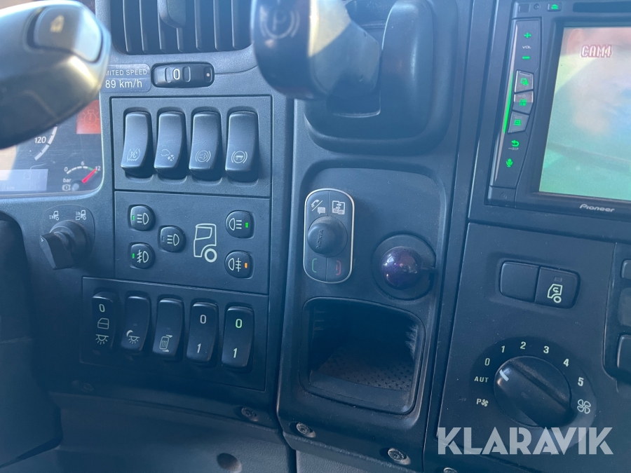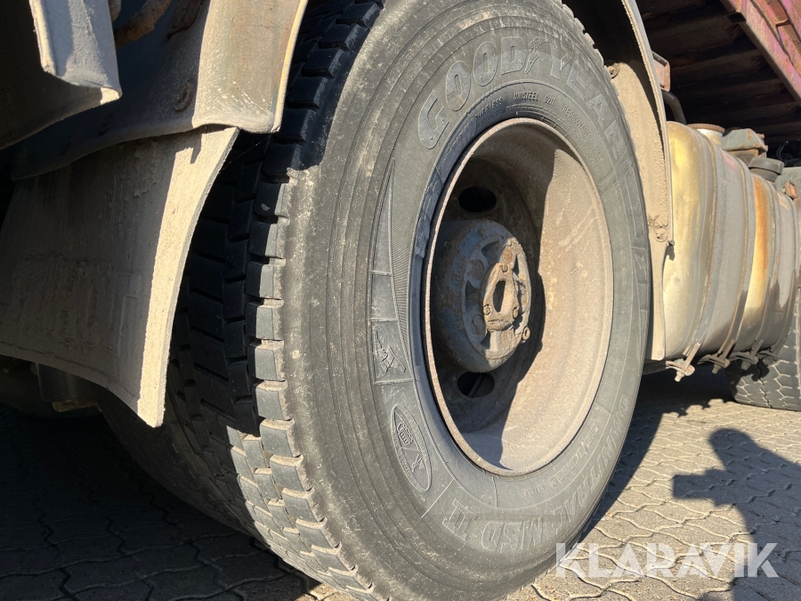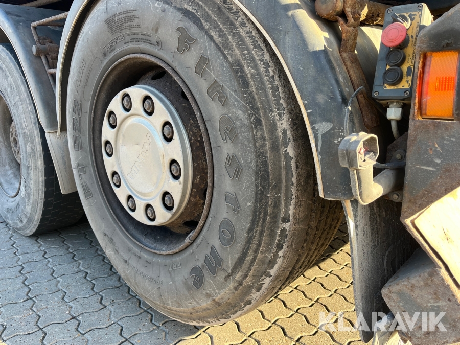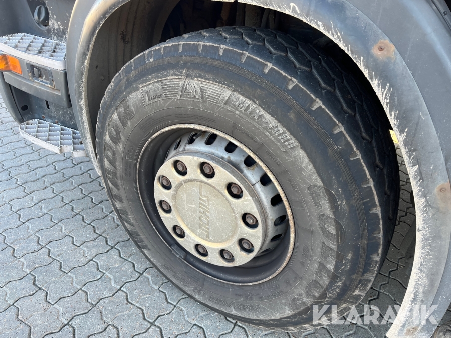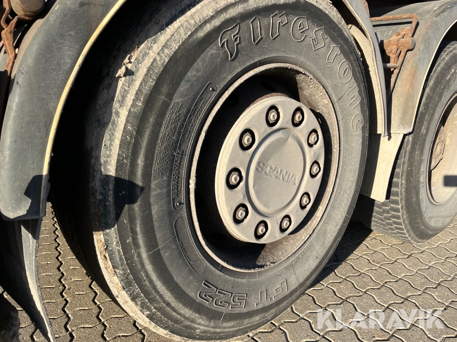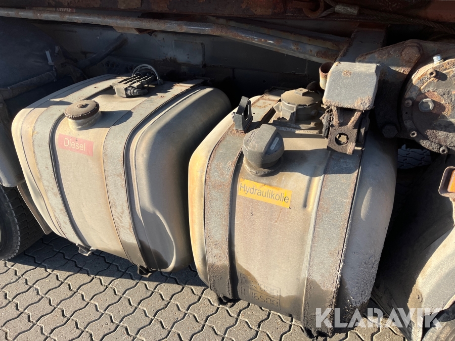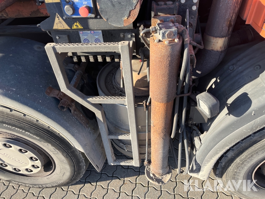 Lastbil Scania P380 med kran og lad