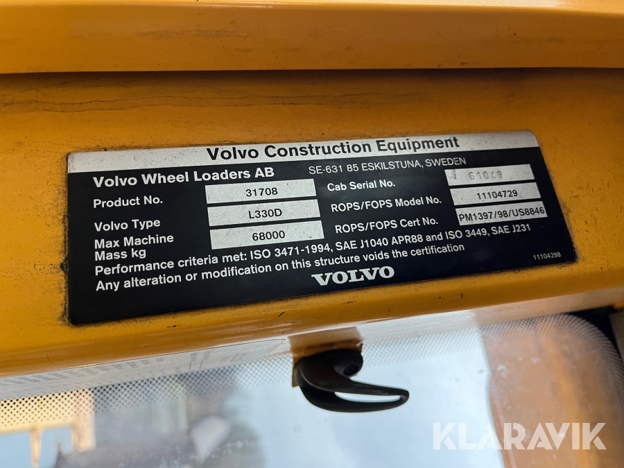 Gummiged Volvo L330D med skovl