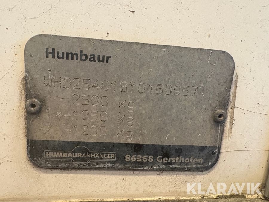 Lukket trailer Humbaur 2500 kg