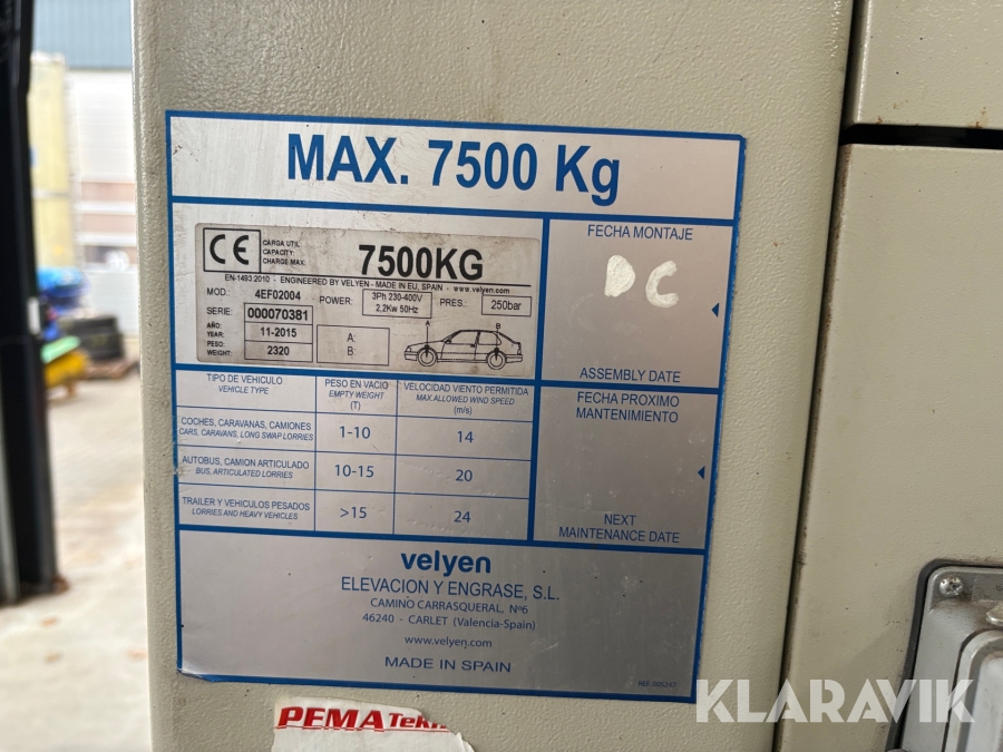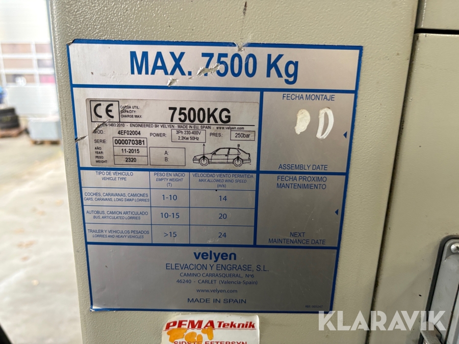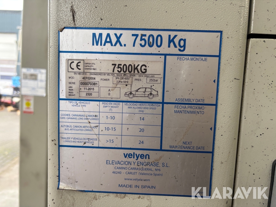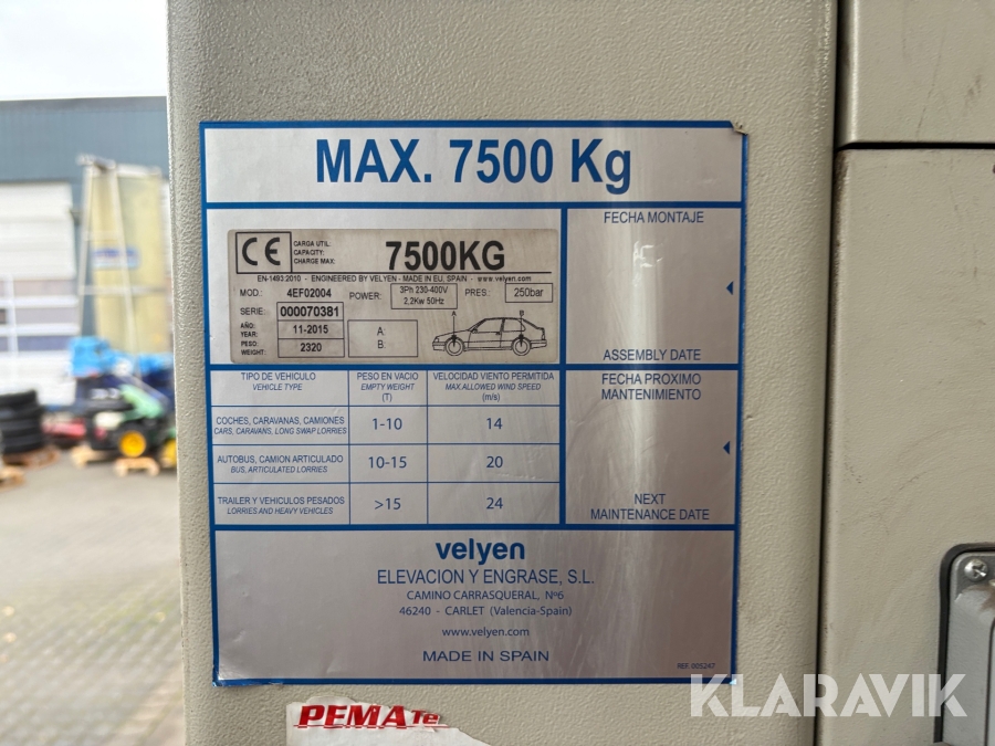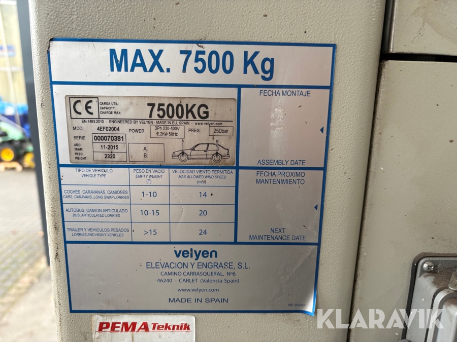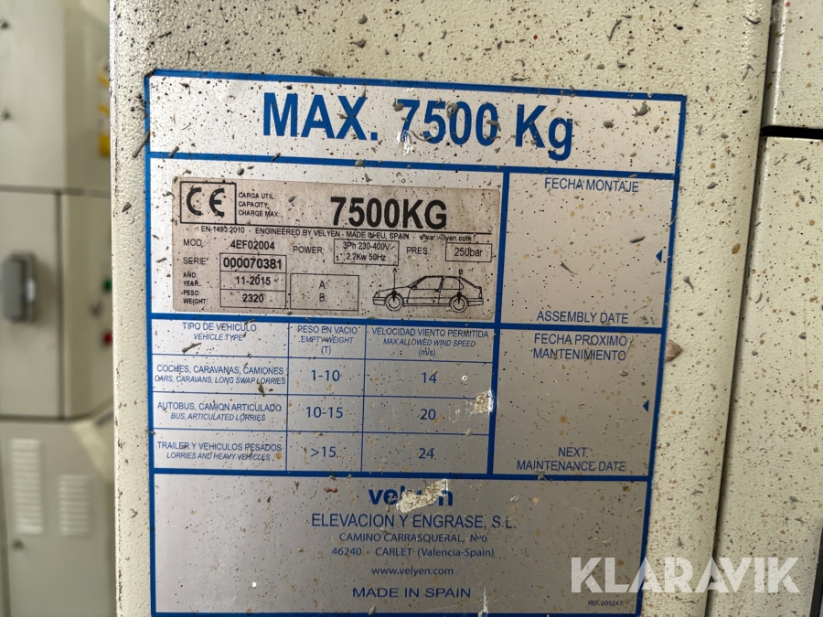 Lift Velyen 4EF02004 6-søjlet til lastbiler og busser