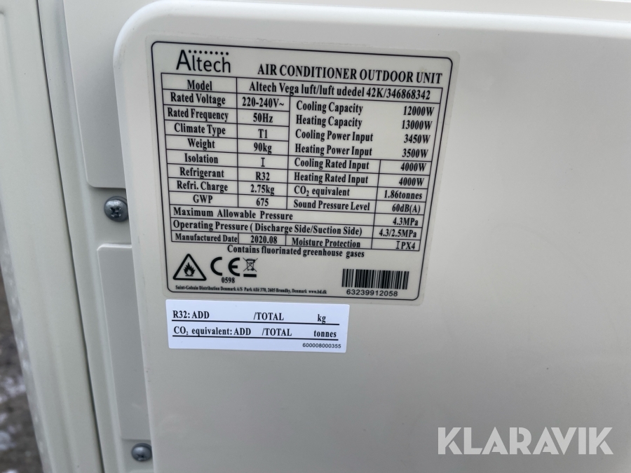 Udendørs enhed til varmepumpe Altech Vega luft/luft 24 styk