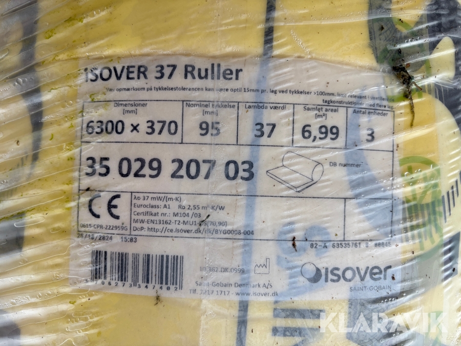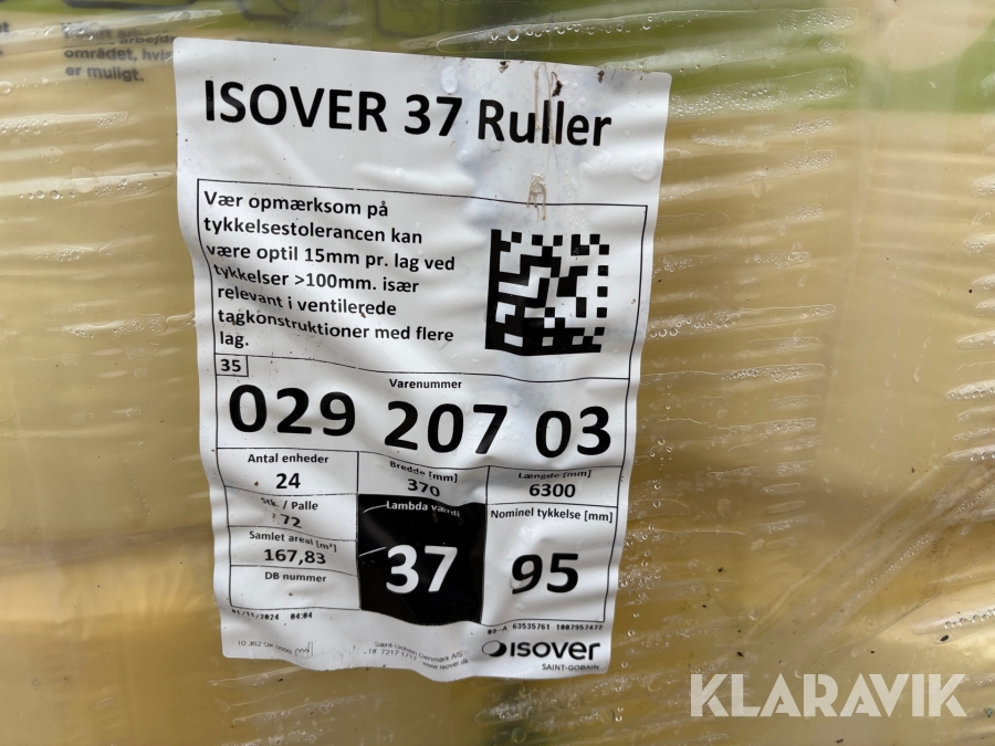 Isoleringsbatts glasuld Isover 37 370x6300 mm 167,83 m²