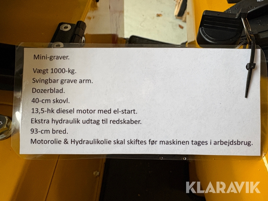 Som køber skal du kontrollere objektet ved afhentning Herefter kan der ikke gøres indvendinger. Hvis objektet adskiller sig væsentligt fra beskrivelsen, skal Klaravik kontaktes inden objektet fragtes (bemærk, at der gælder særskilte vilkår for konkursauktioner). Alle objekt findes hos den sælgende virksomhed, og du som køber har ansvar for afhentning og fragt. Som køber har du 12 dage til at afhente objektet, efter auktionen er afsluttet.