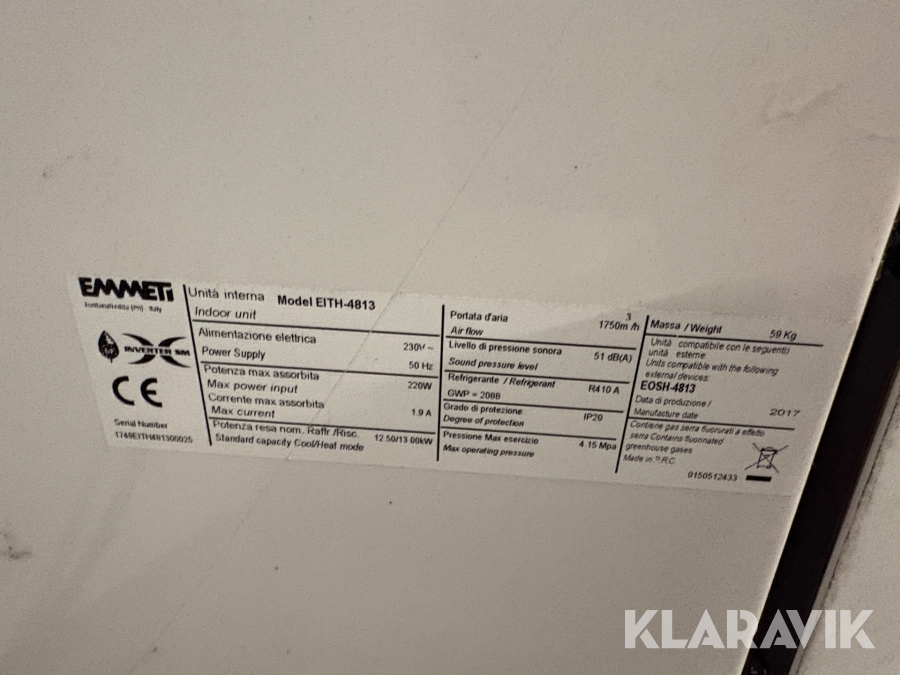 Klimaanlæg Emmeti EITH-4813 med udendørsenhed
