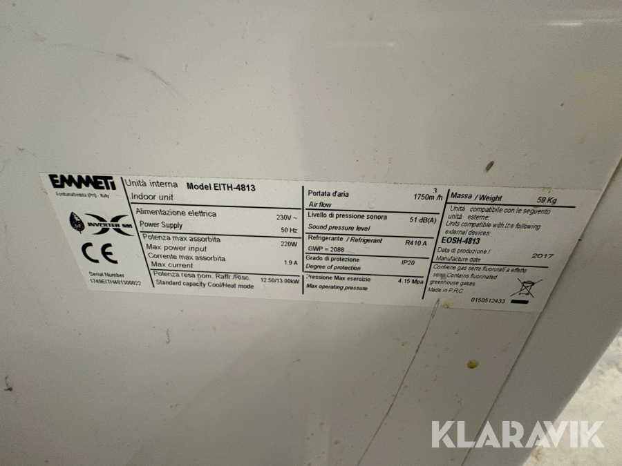 Klimaanlæg Emmeti EITH-4813 med udendørsenhed