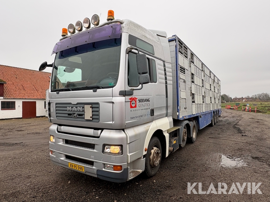 Lastbil Man TGA med anhænger til grisetransport