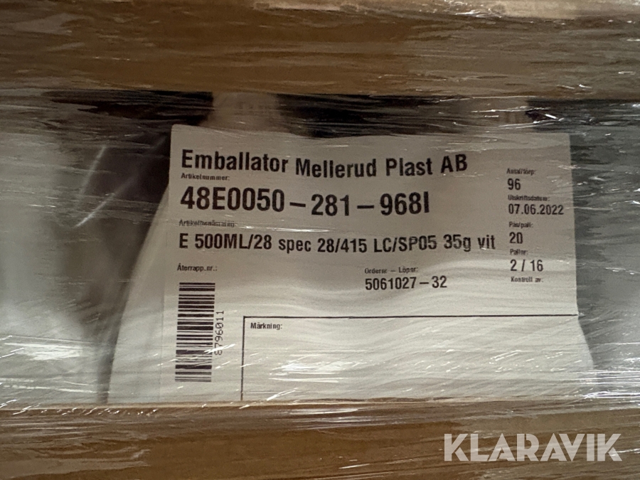 Plastikflasker Enballator Mellerud AB 48E0050-281-968L - 2 paller af 960