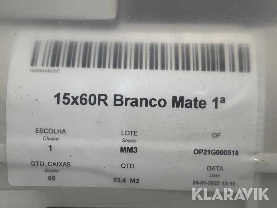 Klinker Recer 15x60R Branco Mate 1a 106,8 kvadratmeter