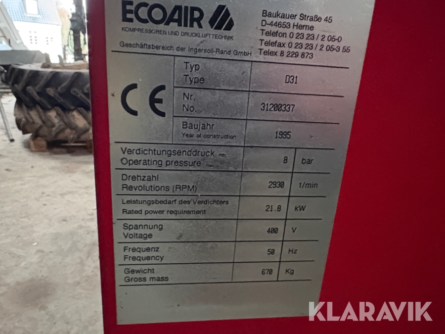 Skruekompressor ECOAIR D31 - 21.8kW