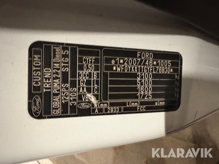 Varebil Ford Transit custom, 2.2 TDCI 125HK