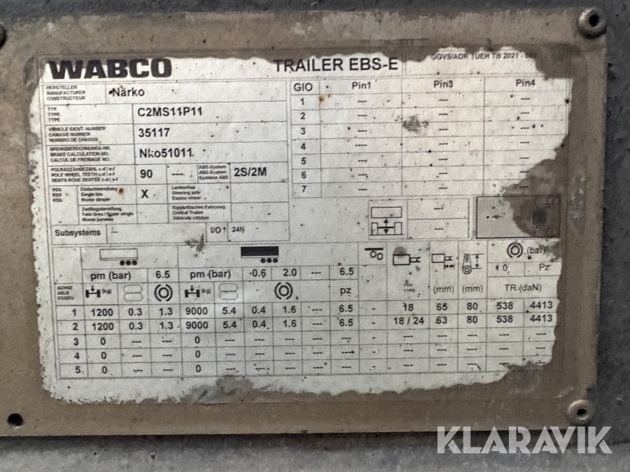 Dolly påhængsvogn Wabco C2MS11P11 - trailer ebs-e