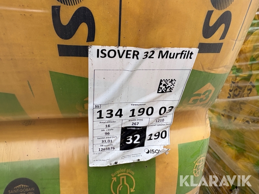 Isolering Isover Murfilt - 3 paller af 31.01kvm