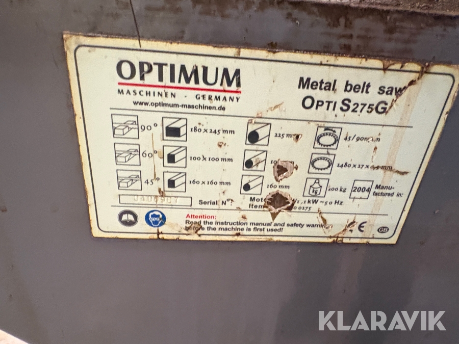 Metalbåndsav Optimum OPTI S275G