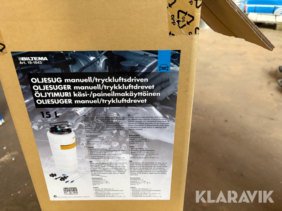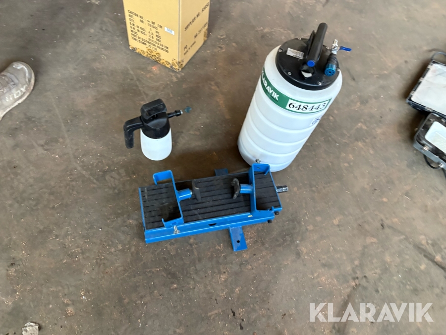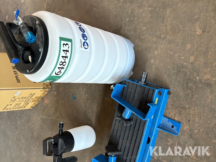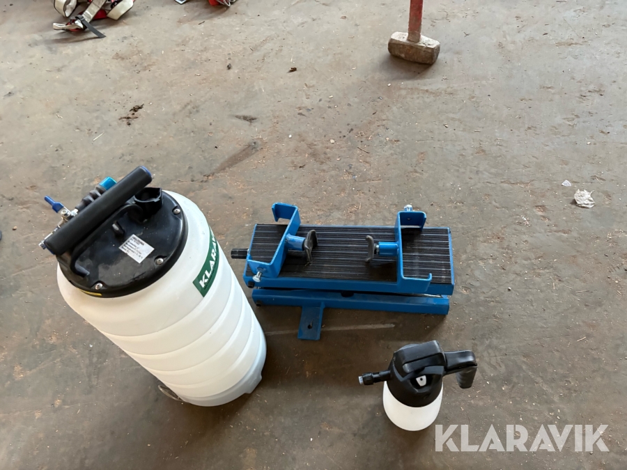 Bilpleje lot, oliesuger samt motorløfte-/motorstøttebjælke i stål.