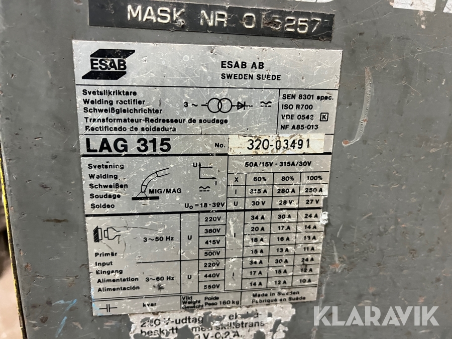 Svejsemaskine Esab LAG 315