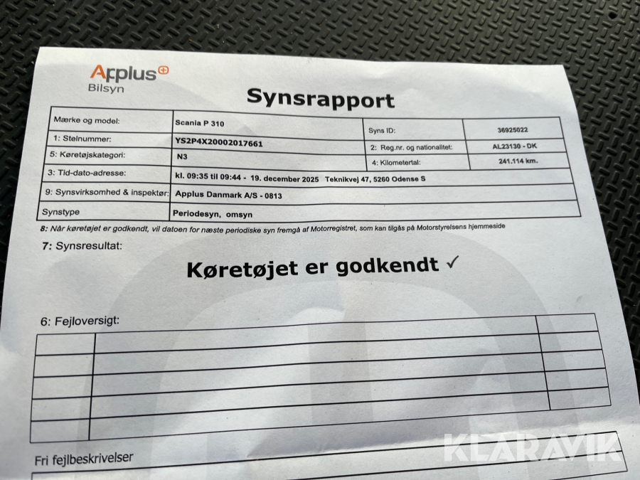 Som køber skal du kontrollere objektet ved afhentning Herefter kan der ikke gøres indvendinger. Hvis objektet adskiller sig væsentligt fra beskrivelsen, skal Klaravik kontaktes inden objektet fragtes (bemærk, at der gælder særskilte vilkår for konkursauktioner). Alle objekt findes hos den sælgende virksomhed, og du som køber har ansvar for afhentning og fragt. Som køber har du 12 dage til at afhente objektet, efter auktionen er afsluttet.