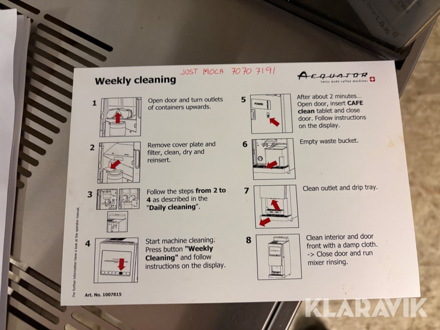 Som køber skal du kontrollere objektet ved afhentning Herefter kan der ikke gøres indvendinger. Hvis objektet adskiller sig væsentligt fra beskrivelsen, skal Klaravik kontaktes inden objektet fragtes (bemærk, at der gælder særskilte vilkår for konkursauktioner). Alle objekt findes hos den sælgende virksomhed, og du som køber har ansvar for afhentning og fragt. Som køber har du 12 dage til at afhente objektet, efter auktionen er afsluttet.