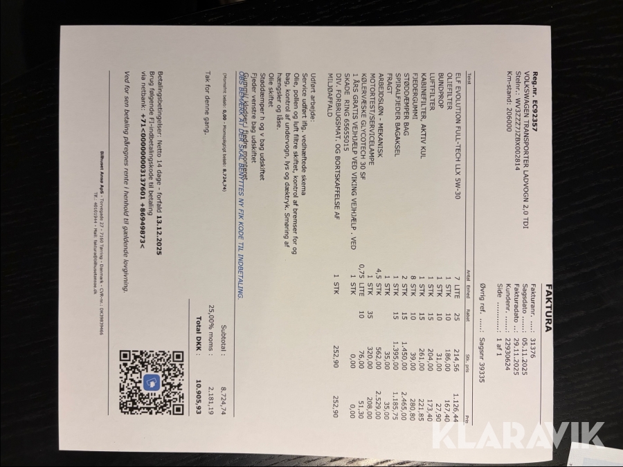 Som køber skal du kontrollere objektet ved afhentning Herefter kan der ikke gøres indvendinger. Hvis objektet adskiller sig væsentligt fra beskrivelsen, skal Klaravik kontaktes inden objektet fragtes (bemærk, at der gælder særskilte vilkår for konkursauktioner). Alle objekt findes hos den sælgende virksomhed, og du som køber har ansvar for afhentning og fragt. Som køber har du 12 dage til at afhente objektet, efter auktionen er afsluttet.