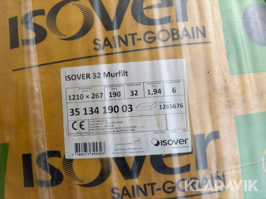 Isolering Isover Murfilt - 3 paller af 31.01kvm