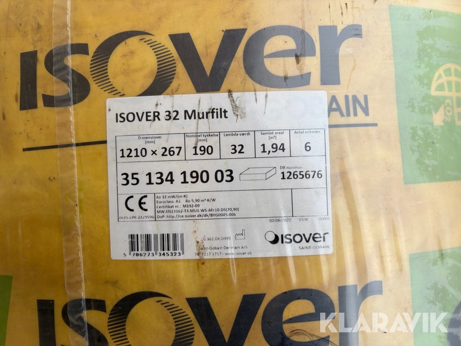 Isolering Isover Murfilt - 4 paller af 31.01kvm