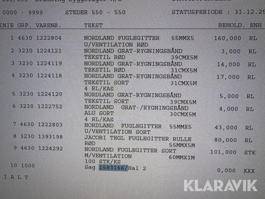 Som køber skal du kontrollere objektet ved afhentning Herefter kan der ikke gøres indvendinger. Hvis objektet adskiller sig væsentligt fra beskrivelsen, skal Klaravik kontaktes inden objektet fragtes (bemærk, at der gælder særskilte vilkår for konkursauktioner). Alle objekt findes hos den sælgende virksomhed, og du som køber har ansvar for afhentning og fragt. Som køber har du 12 dage til at afhente objektet, efter auktionen er afsluttet.