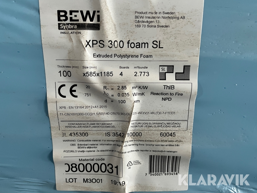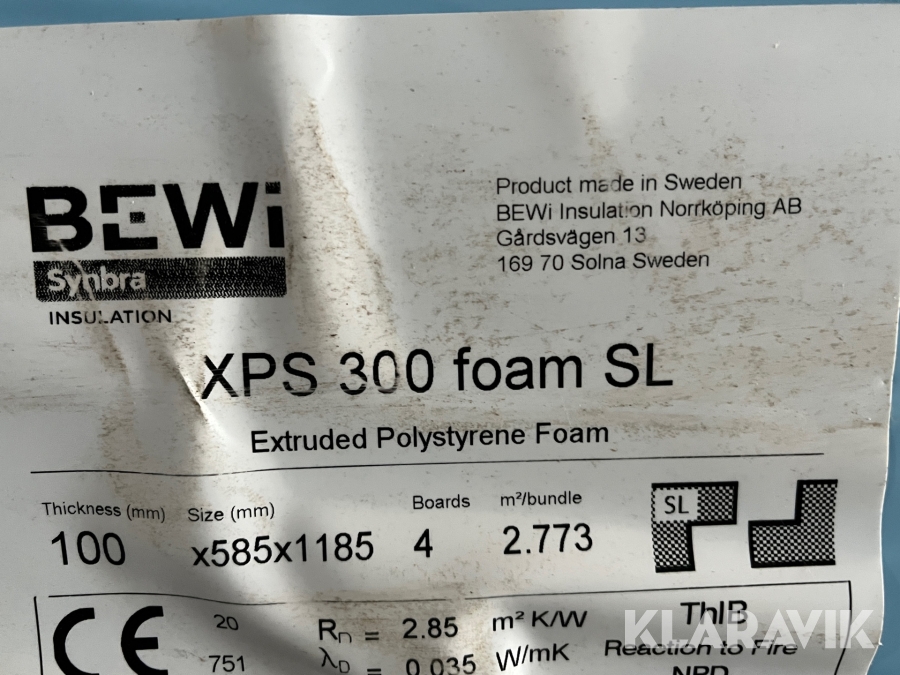 Isolering BEWi XPS 300 foam SL 100 mm 585 x 1185 cm 135 kvadratmeter
