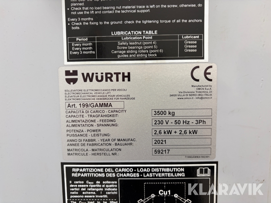 2-søjlet autolift Würth 199/Gamma