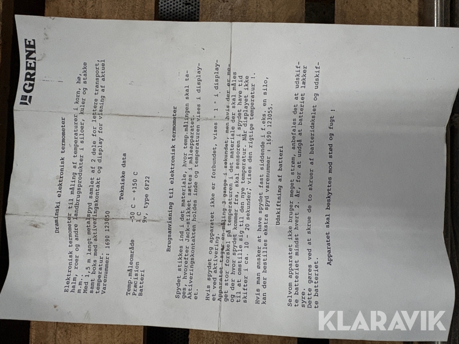 Som køber skal du kontrollere objektet ved afhentning Herefter kan der ikke gøres indvendinger. Hvis objektet adskiller sig væsentligt fra beskrivelsen, skal Klaravik kontaktes inden objektet fragtes (bemærk, at der gælder særskilte vilkår for konkursauktioner). Alle objekt findes hos den sælgende virksomhed, og du som køber har ansvar for afhentning og fragt. Som køber har du 12 dage til at afhente objektet, efter auktionen er afsluttet.