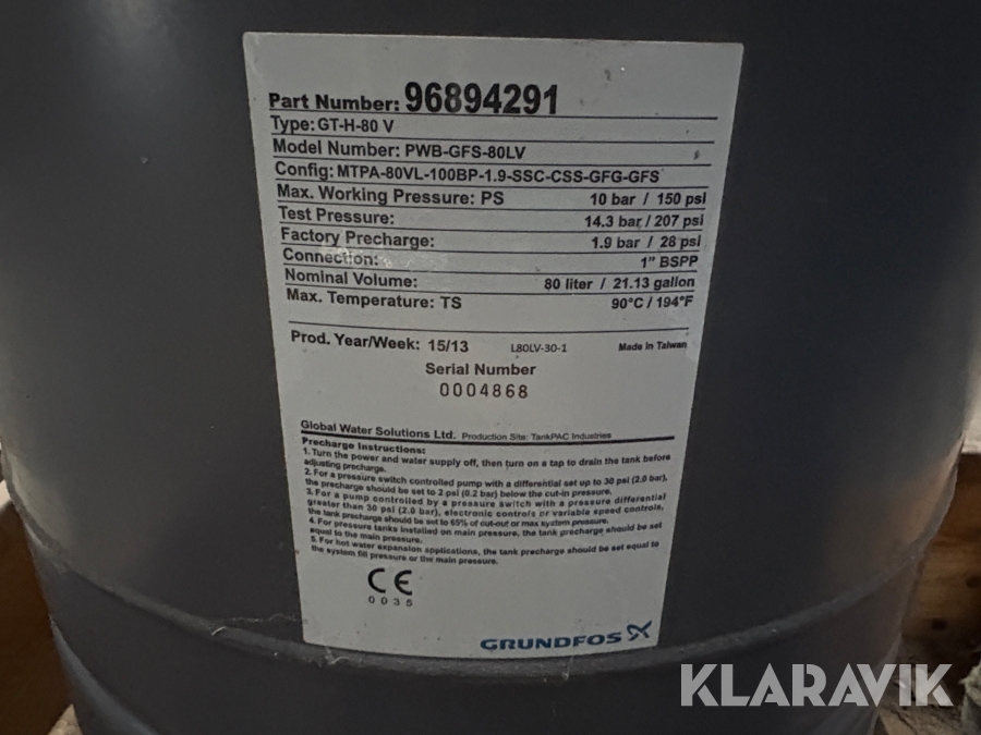 Vandpumpe og hydrofor Grundfos GT-H-80V