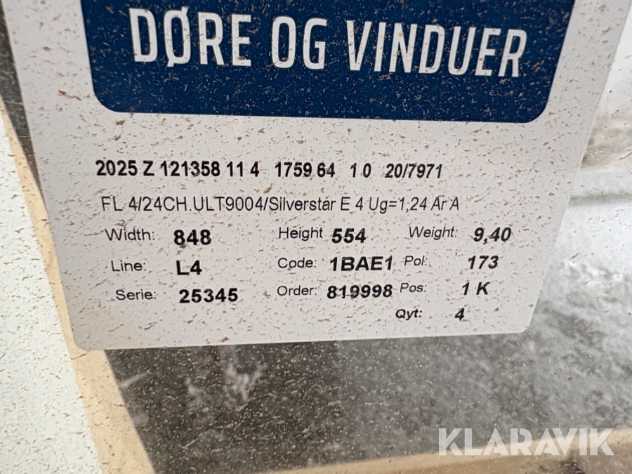 Som køber skal du kontrollere objektet ved afhentning Herefter kan der ikke gøres indvendinger. Hvis objektet adskiller sig væsentligt fra beskrivelsen, skal Klaravik kontaktes inden objektet fragtes (bemærk, at der gælder særskilte vilkår for konkursauktioner). Alle objekt findes hos den sælgende virksomhed, og du som køber har ansvar for afhentning og fragt. Som køber har du 12 dage til at afhente objektet, efter auktionen er afsluttet.