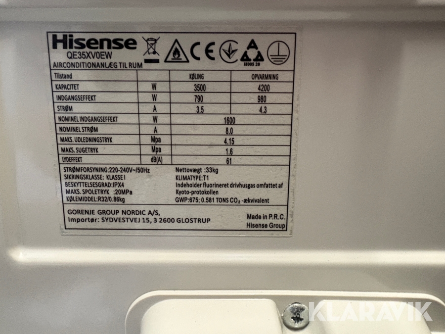 Varmepumpe Hisense QE35XV0EW ude og inde del luft til luft