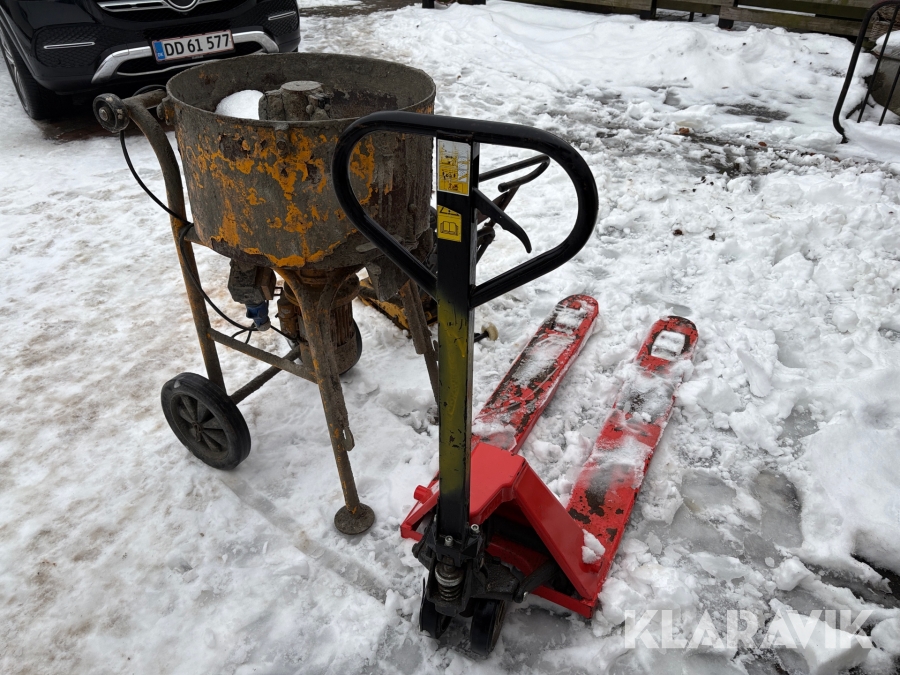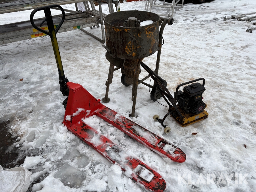 Blandemaskine, pladevibrator og palleløfter