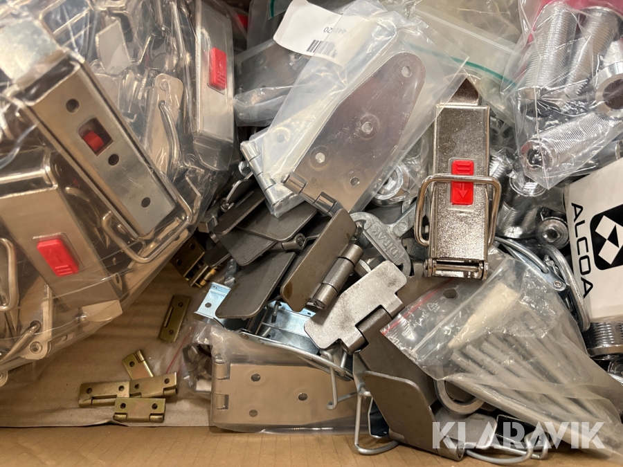Assorteret lot med beslag, låse, spænder mm.