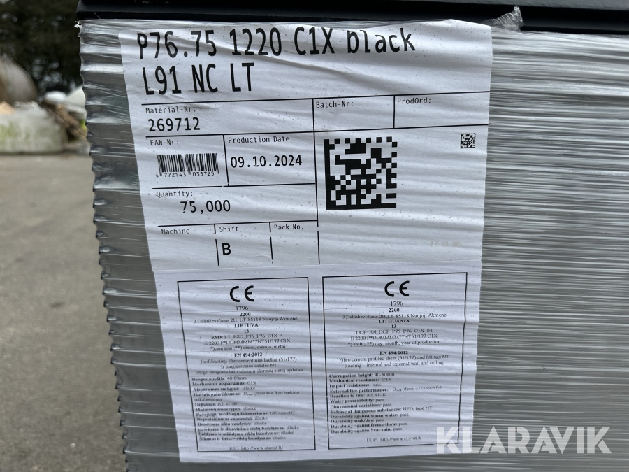Bølgeplade Euronit 700T FK Sort - 75 styks