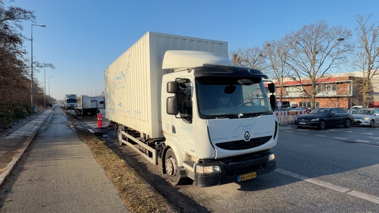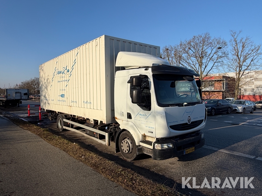Renault lastbil – med skiftelad, lift og container Renault Midlum