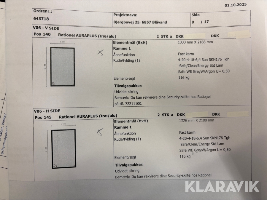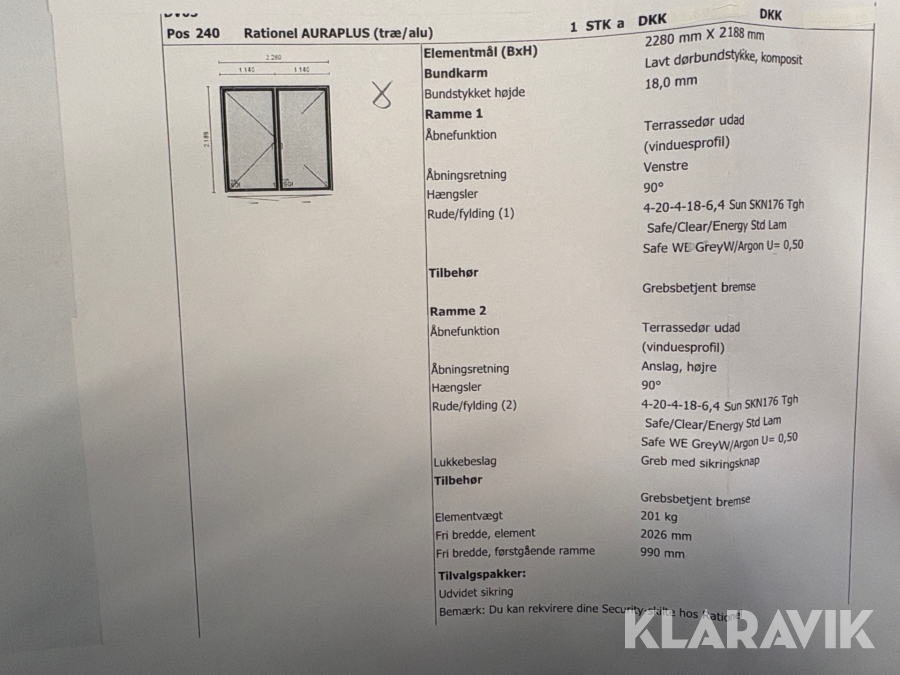 Som køber skal du kontrollere objektet ved afhentning Herefter kan der ikke gøres indvendinger. Hvis objektet adskiller sig væsentligt fra beskrivelsen, skal Klaravik kontaktes inden objektet fragtes (bemærk, at der gælder særskilte vilkår for konkursauktioner). Alle objekt findes hos den sælgende virksomhed, og du som køber har ansvar for afhentning og fragt. Som køber har du 12 dage til at afhente objektet, efter auktionen er afsluttet.
