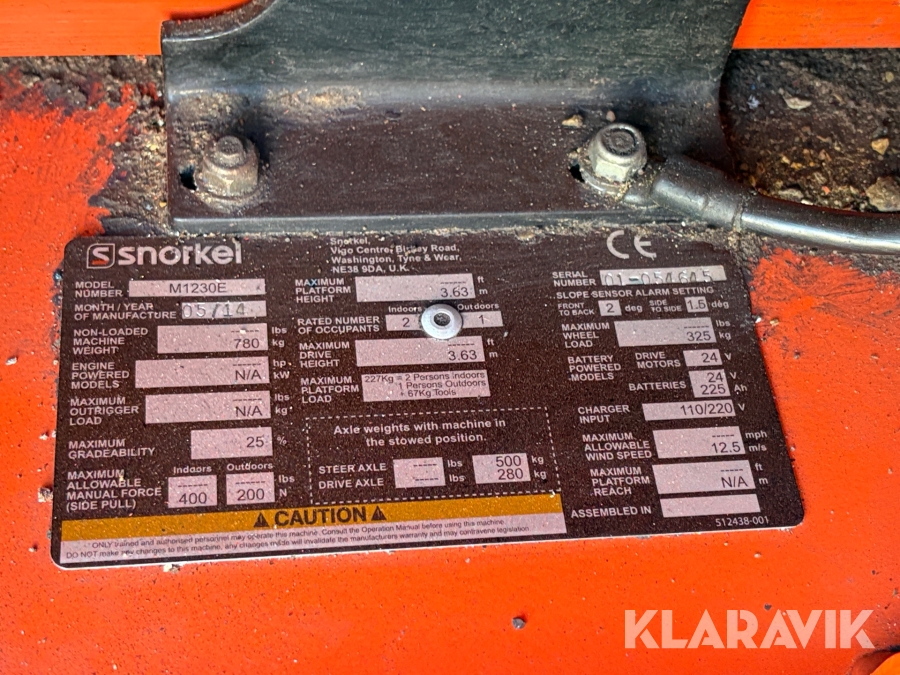 Søjlelift Snorkel M1230E
