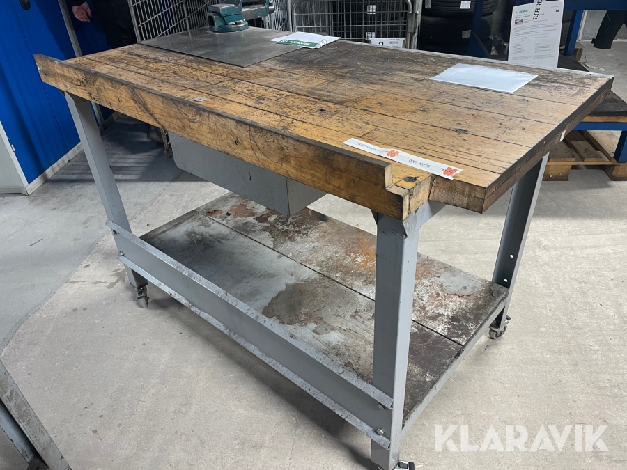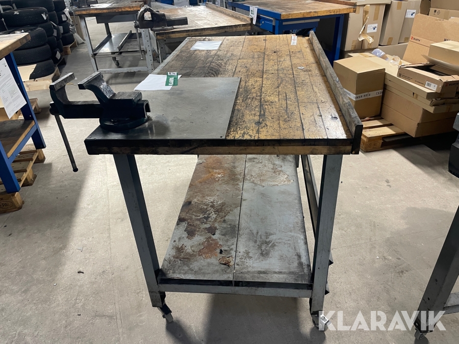 Arbejdsbord på hjul med skruestik